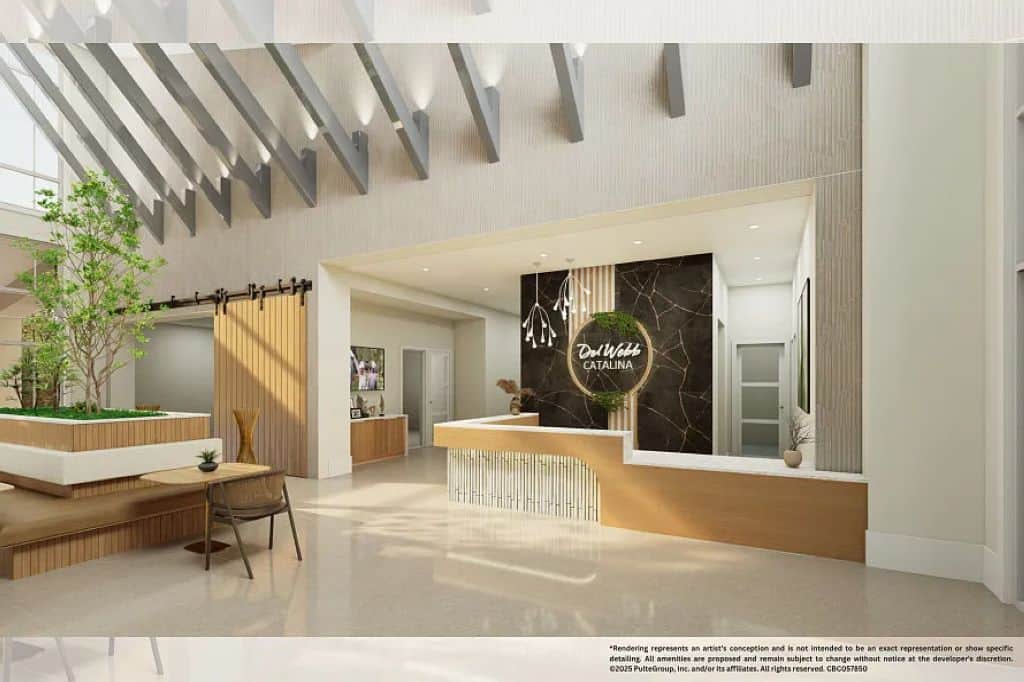 Del Webb Catalina offers a mix of single-family homes and attached villas. Floor plans are designed for active adult living and typically feature open layouts, modern finishes, and options for flexible living spaces.