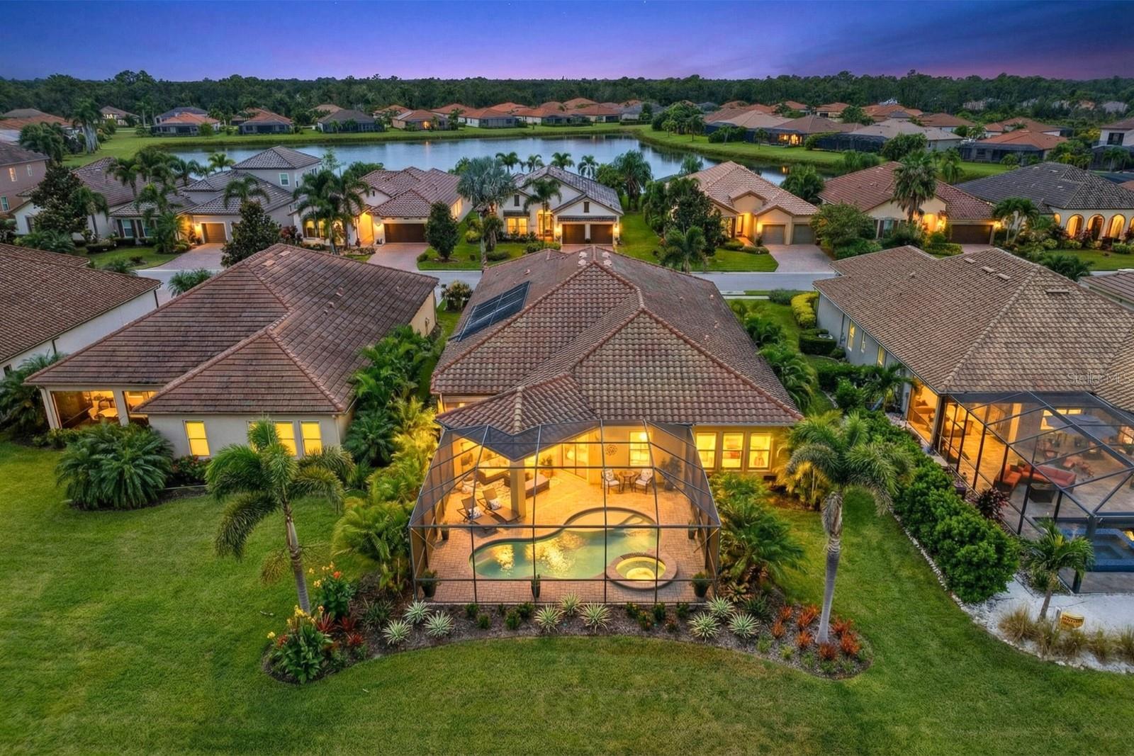 Move-in ready lakefront pool home in gated golf & tennis community—why wait to build? This upgraded Siesta floor plan offers 3 bedrooms, 2.5 baths, plus a den, and is loaded with premium features that would cost thousands more in new construction. Built with impact-resistant windows and doors, this home provides peace of mind and easy storm preparation. The open-concept great room showcases a custom stone feature wall with built-in cabinetry and fireplace, coffered ceilings, crown molding, and wood-look tile flooring, creating a stylish yet comfortable living space. The chef’s kitchen features an extended island, espresso wood cabinetry, granite countertops, designer backsplash, stainless steel appliances, double wall ovens, gas cooktop, and a walk-in pantry—ideal for entertaining and everyday living. Step outside to your private lake-view backyard with a solar-heated saltwater pool and spa. The outdoor kitchen includes a Blackstone grill, sink, refrigerator, and polymer cabinetry, while electronic hurricane shades enclose the covered lanai for added protection and convenience. The spacious primary suite offers a free-standing soaking tub, oversized Roman shower, and a large walk-in closet. Two guest bedrooms share a Jack-and-Jill bath, and the den provides flexible space for a home office or media room. Additional highlights include an expanded laundry room, extended garage with epoxy flooring, enhanced landscape lighting, paver driveway, screened front entry, and exceptional curb appeal. Enjoy the resort-style amenities of Rosedale Golf & Tennis Country Club, including tennis, bocce, fitness center with classes, junior Olympic pool, 22,000-sq-ft clubhouse, full-service restaurant, and year-round social events. Optional golf memberships available. HOA includes lawn care, cable, internet, two 24/7 manned gates, and dog parks. NO CDD fees. Prime location just east of I-75, near UTC Mall, Sarasota-Bradenton International Airport, top medical facilities, dining, and world-class Gulf Coast beaches. Schedule your private tour today and experience the Rosedale lifestyle.