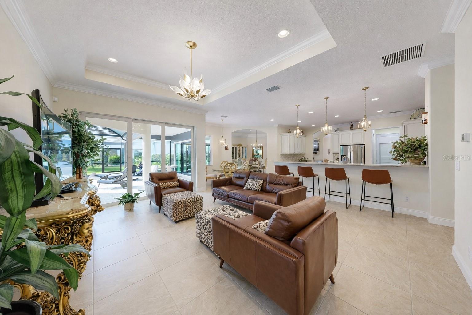 Welcome to a refined Florida lifestyle where elegant design, privacy, and effortless indoor-outdoor living come together on a nearly half-acre homesite backed up to a preserve within the gated Reserve at Twin Rivers. From the moment you arrive, the home’s striking curb appeal captivates, featuring lush, manicured landscaping, a wide pavered driveway, and a three-car garage. Built by Medallion Homes, this residence offers over 4,600 square feet of covered living space, combining timeless craftsmanship with modern peace of mind, including HURRICANE-IMPACT WINDOWS AND SLIDERS throughout, a TILE ROOF, GUTTERS and a brand-new WHOLE-HOUSE GENERATOR powered by a 500-GALLON BURIED PROPANE TANK. Step inside to discover elegant architectural details, with TRAY CEILINGS and CROWN MOLDING throughout. The front of the home features a formal dining room, inviting sitting room, and a private office with glass French doors and built-in shelving. Ideal for hosting guests or working from home. Toward the back, the home opens effortlessly to the outdoors. Sliders from the living room, kitchen, primary suite, and bonus room provide seamless access to a resort-style lanai, HEATED SALTWATER POOL, and SPA. Surrounded by lush palms for privacy, the lanai includes an OUTDOOR KITCHEN, the perfect for alfresco dining, entertaining, or relaxing in a tropical retreat. The kitchen is both beautiful and functional, featuring a large cooking island, upgraded cabinetry, quartz countertops, bar-top seating, a walk-in pantry with built-in shelving, and a butler’s pantry. The café dining area is highlighted by an aquarium window, bringing a touch of nature inside. The split floor plan offers privacy and comfort. The primary suite is a serene retreat with sliders to the pool, dual walk-in closets, and a spa-inspired en-suite bathroom with dual vanities, a dedicated makeup area, large walk-in shower, and a private water closet with a separate porcelain bidet. Two bedrooms share a Jack-and-Jill bath with tub, while a fourth bedroom near the bonus room enjoys a full pool-access bathroom with shower. The BONUS ROOM, located off the living room, is a true showpiece featuring a COFFERED ceiling, BUILT-IN BAR with WINE REFRIGERATOR, dramatic STACKED STONE ACCENT WALL, BUILT-IN ELECTRIC FIREPLACE, and sliders opening directly to the lanai and pool. The perfect place for entertaining or unwinding. Located in a GATED community with NO CDD fees and low HOA FEES THAT INCLUDE CABLE AND INTERNET, this exceptional property offers rare privacy while remaining close to Parrish, Bradenton, Lakewood Ranch, premier shopping and dining, and the Gulf Coast beaches. This is refined Florida living at its finest where elegant interiors, expansive indoor-outdoor spaces, and thoughtful upgrades create a truly extraordinary place to call home. CLICK on the links for VIDEO and 3D TOURS!