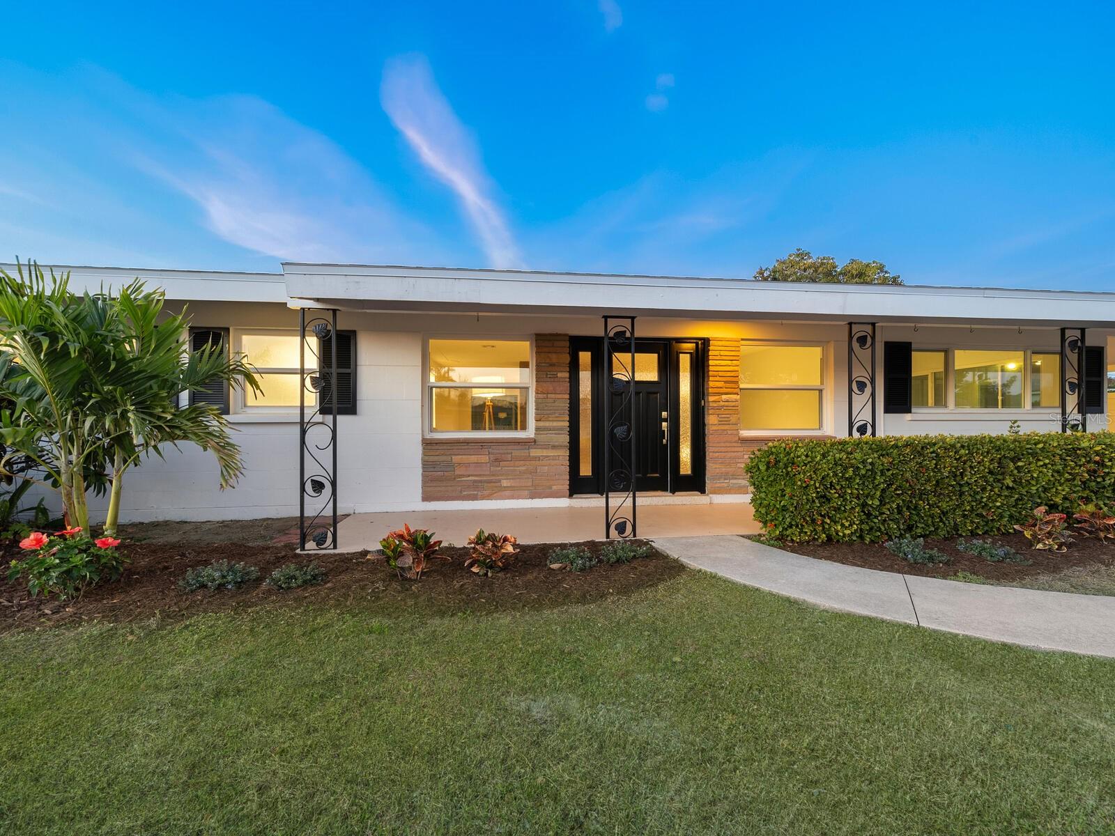 One or more photo(s) has been virtually staged. Tucked away on an oversized corner lot in the desirable South Gate neighborhood, this beautifully refreshed mid-century modern home is a rare blend of timeless design and thoughtful updates. Recently updated, the home features refinished terrazzo floors, a brand-new kitchen with updated cabinetry, countertops, and appliances, along with new bathroom vanities—allowing the original character of the era to shine while offering modern comfort. The flexible floor plan includes three bedrooms, two bathrooms, and an expansive 12’ x 13’ laundry room that could easily be reimagined as a home office, studio, or additional living space—bringing the interior to nearly 2,000 square feet. Large windows and classic architectural lines reinforce the home’s authentic mid-century feel. Anchoring the home is a dramatic double-sided stone fireplace, a true mid-century architectural statement that subtly divides living spaces while maintaining openness and flow. Crafted in natural stone, it functions as both a sculptural focal point and a functional hearth—an unmistakable nod to the design principles of the era. Outdoors, enjoy an excellent covered patio overlooking a generous screened-in pool—perfect for relaxed afternoons or entertaining year-round. The oversized corner lot enhances privacy and provides a true sense of space rarely found in this area. South Gate offers an optional HOA, giving residents access to a community pool, clubhouse, and a full calendar of neighborhood events—adding a wonderful sense of connection without obligation. Ideally located, the home is just a short walk or bike ride to Arlington Park, Southside Village, and Sarasota Memorial Hospital, with quick access to downtown Sarasota, Siesta Key, and St. Armand's Circle. This is a true mid-century modern home for those who appreciate the architecture, simplicity, and enduring style of the era—set in one of Sarasota’s most beloved neighborhoods.