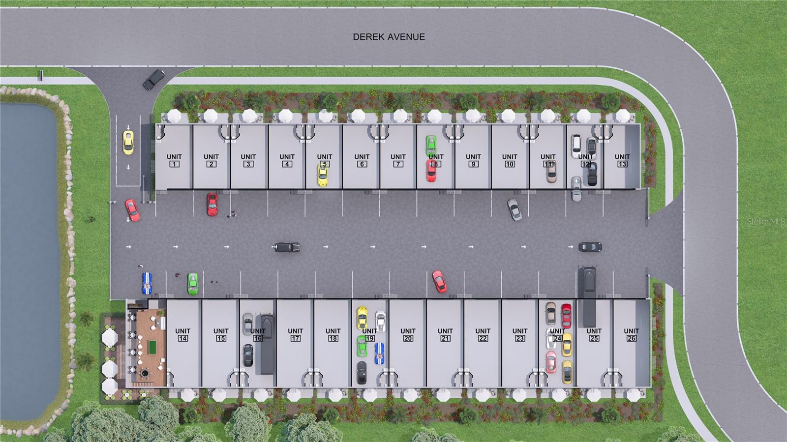 Pre-Construction. To be built. Welcome to Car Bank 2.0, Sarasota’s premier, private garage condominium community in the heart of Palmer Ranch. This exclusive enclave offers 26 individually owned garage condos, perfect for *CAR COLLECTORS, 45' RV OWNERS, HOBBYISTS, ARTIST STUDIO, WINE STORAGE, WORKSPACE* seeking secure, high-end storage with exceptional convenience and customization. Each unit features solid concrete tilt-wall construction, designed to withstand 150 mph hurricane-force winds, with two sizes, units 1-13 are approx. 1,008 sq. ft. (42’D x 24’W) and 21.5' interior ceilings—ideal for mezzanines or car lifts. Units 14-26 are approximately 1,375 sq. ft. (55'D x 24'W) and ideal for larger collections and/or 45' motorcoaches. ***UNIT 11 is 24'W X 42'D. *** Interiors are fully insulated and climate controlled with a quiet, efficient HVAC split system, 14' x 14' insulated motorized overhead door, and separate walk-in door. Additional features include a half bathroom, utility sink, fire sprinkler system, LED lighting package, high-speed internet wiring, multiple GFCI outlets, RV hookups (including optional 50-amp service), and high-quality concrete floors ready for customization. The gated community provides 24-hour computerized access, monitored surveillance cameras, and 60'-wide driveway for easy maneuvering and privacy. The owner's clubhouse will be a space where neighbors can gather to share their passion, host private celebrations and car shows or watch parties. The space will include a bar and serving area, indoor and outdoor seating, television, and patio overlooking the serene pond. At 28' above sea level and located just minutes from I-75, Sarasota’s dealership row, the Legacy Trail, and 3.8 miles from Siesta Key, this is the ultimate combination of location, security, and functionality. Optional upgrades include individual backup generators, mezzanines, hydraulic lifts, cabinetry, epoxy or polished concrete floors, specialty lighting, sound systems, and additional security packages. With low monthly HOA fees, top-tier construction, and a prime Sarasota location, Car Bank 2.0 offers more than storage — it’s a lifestyle. Model available for viewing at Car Bank SRQ!