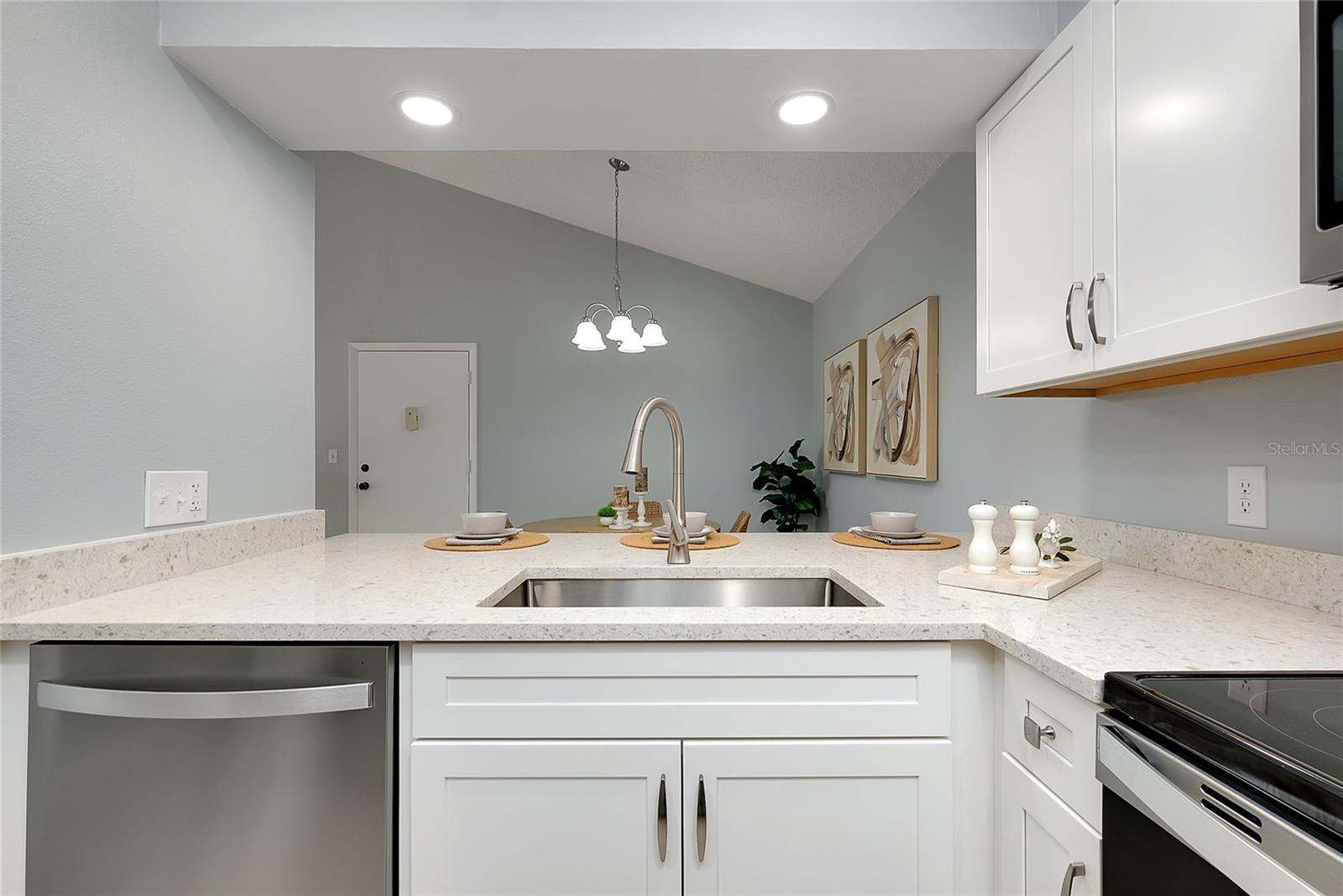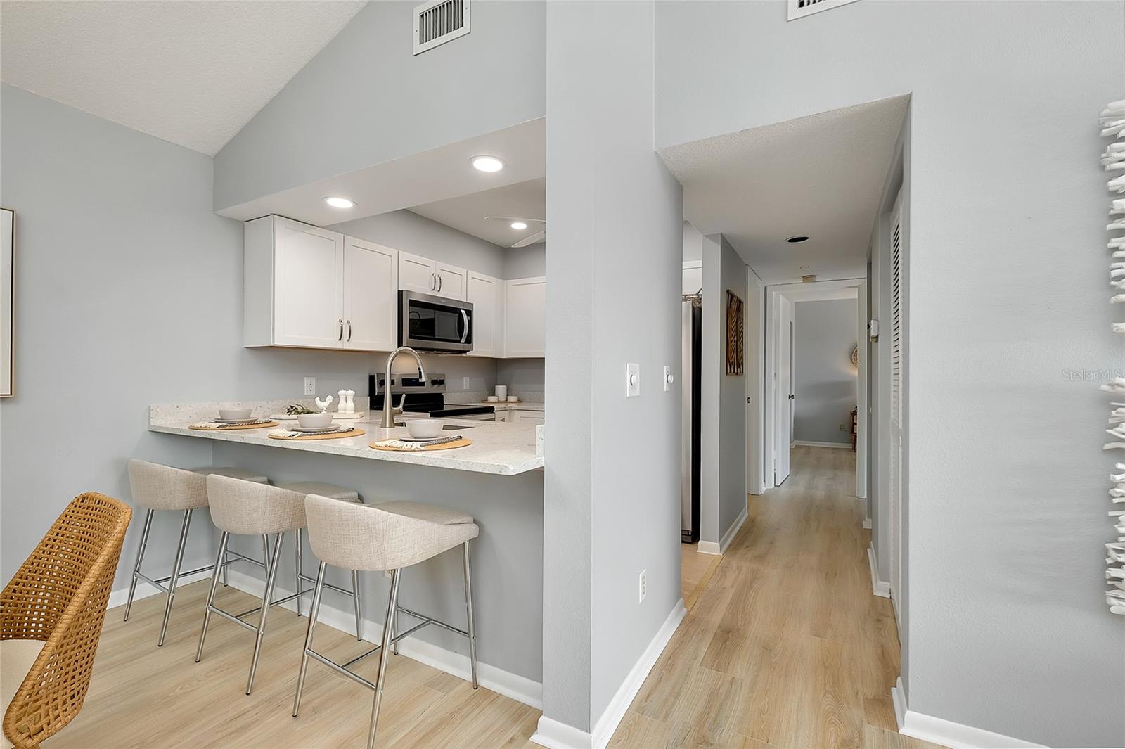 Move-In Ready, Fully Furnished Updated. Exceptional Value. Discover effortless Florida living in this beautifully updated 2BR/2BA condo in the coveted Phase V of Bird Bay Village. Vaulted ceilings and open layout create a bright, expansive feel, while the prime east-facing orientation delivers sunny mornings and cooler, shaded afternoons enjoyed from two private lanais-ideal for everyday unwinding. This residence stands apart with significant, high-value improvements. The brand-new 2025 kitchen showcases quartz countertops, stainless steel appliances, including range, dishwasher, and microwave under extended warranty, along with a 2023 refrigerator with ice machine. Major systems provide peace of mind with the new 2022 HVAC and 2023 water heater. Durable Pergo flooring flows through the living and bedroom areas, complemented by low-maintenance tiled lanais. This coastal retreat conveys with new 2025 furniture( dining set, sofa, primary bedroom set with mattress) and new blinds throughout. Additional highlights include a custom primary closet with attic access, covered carport, and dedicated beach and bike storage. Ideally located steps from Phase V pool and BBQ area. Residents enjoy Bird Bay’s resort-style amenities: pickleball, and tennis courts, heated pool, fitness center, clubhouse, scenic boardwalk, and direct access to the Legacy Trail-all just minutes from Downtown Venice and world-class Gulf beaches.This is a must see.