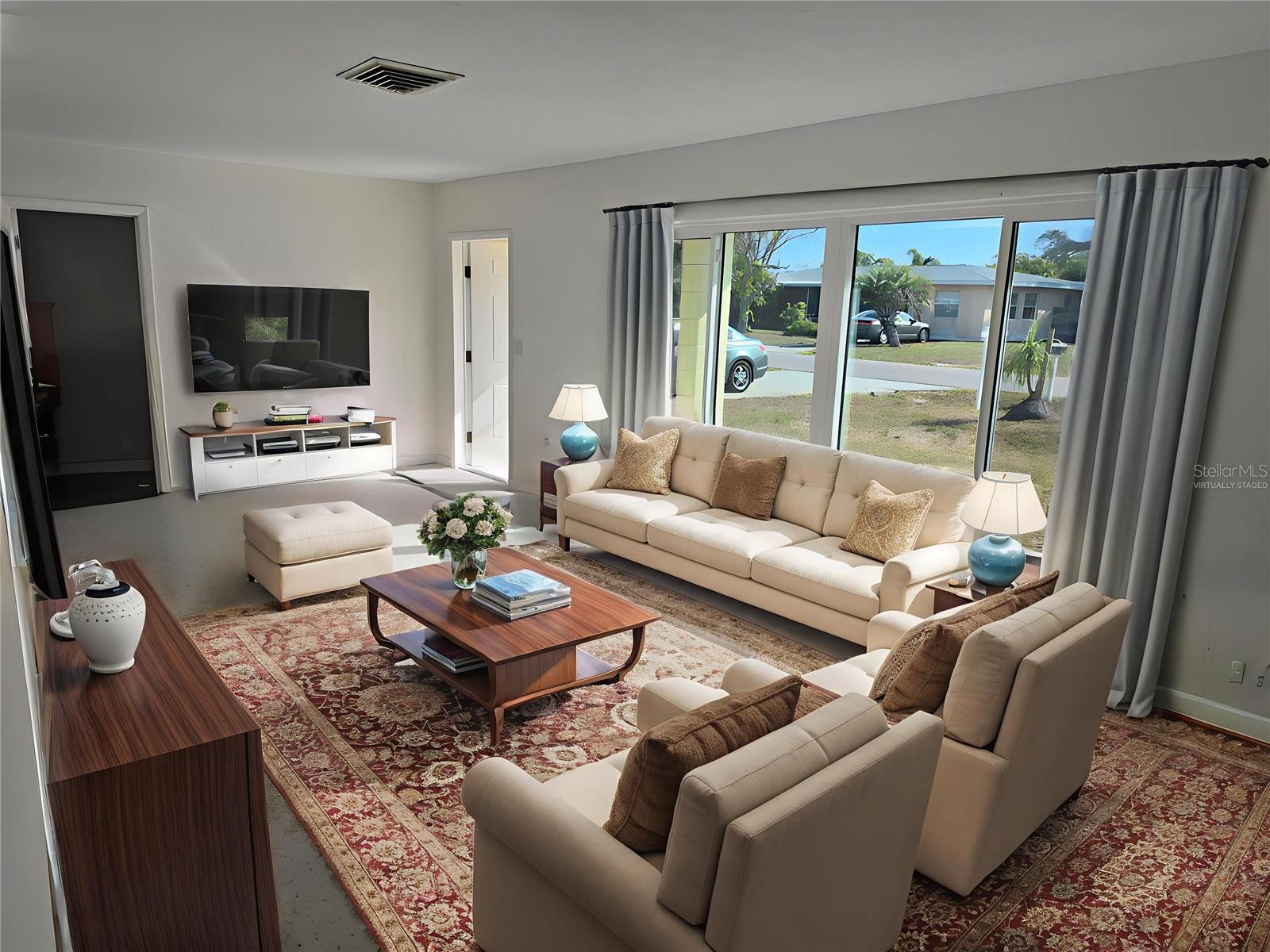 One or more photo(s) has been virtually staged. GREAT OPPORTUNITY to own this spacious split 3 Bed 2 bath Florida style home with both a living room and a family room. Large covered screened lanai, fenced in and gated backyard make this an ideal home for a family and pets. RECENTLY REMODELLED with new kitchen cabinets, quartz counters and appliances. New energy efficient and hurricane impact windows. Spectacular new designer epoxy floor in the family room and professionally restored terrazzo floors throughout the rest of the house. New bathroom vanities and cabinets in both bathrooms. New HVAC and electric panel in 2022. Roof was replaced in 2013. Short walk to East Gate Park which has a playground and covered picnic benches. Very convenient to shops, historic downtown Venice, restaurants and local beaches.